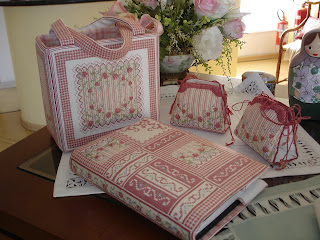 O livro é tão bonito como a bolsa e sacola. Você tem muita habilidade com cor e design. Obrigado por esses projetos elegantes para bordar.