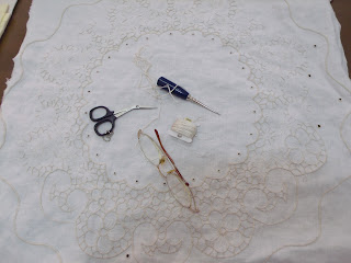 e dois bordados antigos com pequenos furinhos - ilhóses bordados...