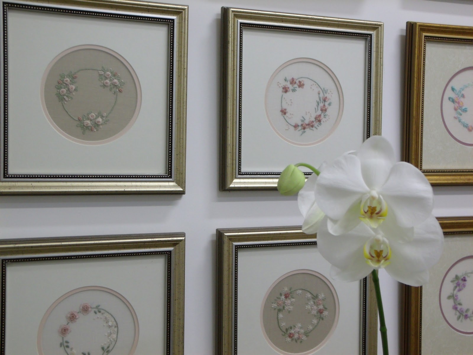 Lee, engraçado é que quando em São Paulo - na 7º Brazil Patchwork Show -eu as vi de perto não reparei nas molduras... apenas no bordado. Tal fato aconteceu por os bordados serem tão lindos e especiais...Agora nessa foto, ai na sala de aula, nesse conjunto, continuam lindas...... abraços de MF , com votos de bom final de semana.