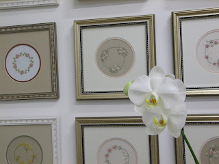 engraçado é que quando em São Paulo - na 7º Brazil Patchwork Show -eu as vi de perto não reparei nas molduras... apenas no bordado. Tal fato aconteceu por os bordados serem tão lindos e especiais...Agora nessa foto, ai na sala de aula, nesse conjunto, continuam lindas......